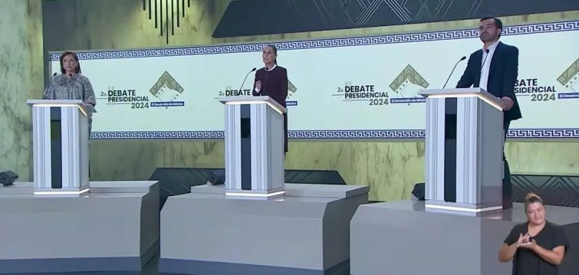 Tras agotar su tiempo, Sheinbaum quedó sin poder usar la palabra, mientras Gálvez y Álvarez Máynez continuaron por varios minutos. La candidata de la oposición aprovechó para señalar que el nearshoring se está yendo porque no hay certeza a los inversionistas.
