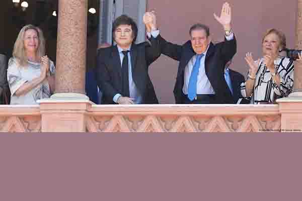 Milei y González Urrutia salieron al balcón de la Casa Rosada, donde miles de venezolanos los recibieron al grito de «presidente, presidente», «Libertad» y «Gracias Milei».