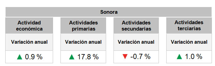 En el tercer trimestre (3T) de 2025, la actividad económica de Sonora mostró un crecimiento anual de 0.9 por ciento. Este resultó del avance de las actividades primarias y terciarias de 17.8 y 1.0 %, respectivamente. A su vez, las secundarias se redujeron 0.7 %