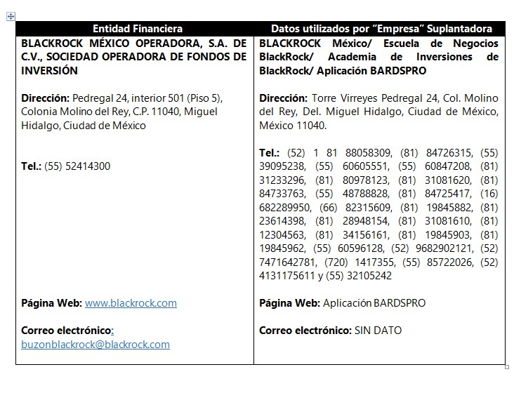 - Blackrock México Operadora, S.A. de C.V., Sociedad Operadora de Fondos de Inversión.