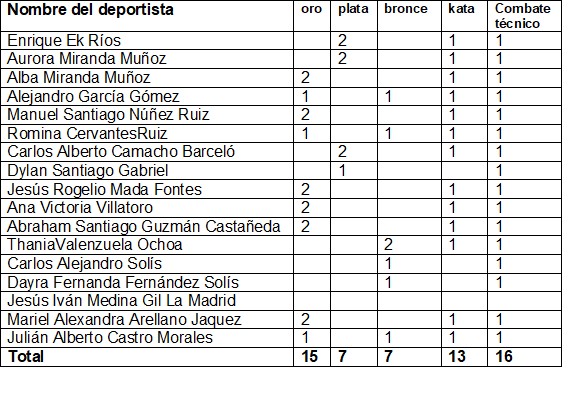 En la competencia nacional los sonorenses se llevaron en conjunto 29 medallas 15 de ellas de oro, 7de plata y 7 de bronce. 13 en la modalidad de kata y 16 en la modalidad de combate técnico