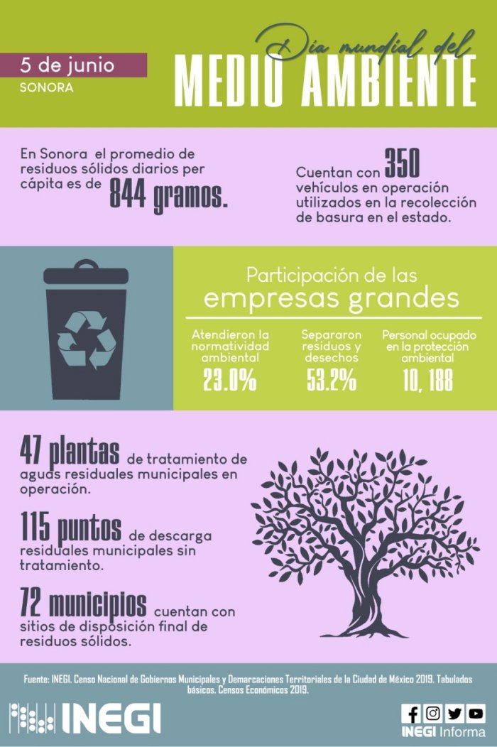 HERMOSILLO, SONORA,MX.── de acuerdo al Instituto Nacional de Estadística Geografía e informática (INEGI) los sonorenses generan per cápita 844 gramos de residuos sólidos diarios y si la población a 2020 es 2 millones 945 mil habitantes se generan diariamente2 mil 485.58 kilos de basura diaria, un promedio de 345.2 kilos por municipio que son 72 y que recolecta un total de 350 camiones casi 5 camiones por municipio.