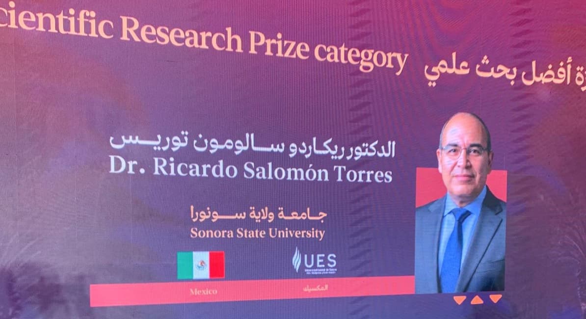 SAN LUIS RÍO COLORADO, SONORA.MX. — El profesor investigador Ricardo Salomón Torres, de la Universidad Estatal de Sonora (UES) Unidad San Luis Río Colorado, fue distinguido con el NCPD International Prize 2025-Premio a la Mejor Investigación Científica, otorgado por el Centro Nacional de Palmas y Dátiles (NCPD, por sus siglas en inglés) del Reino de Arabia Saudita.