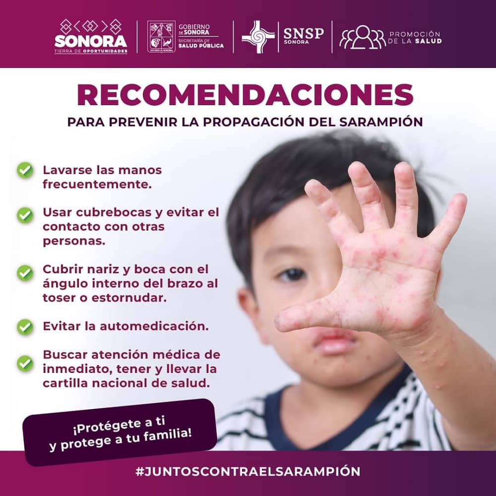 HERMOSILLO, SONORA.MX. — La Secretaría de Salud Pública (SSP) reitera a la población que la vacunación es la principal medida para prevenir el contagio de sarampión, por lo que invita a revisar y completar los esquemas de inmunización.
