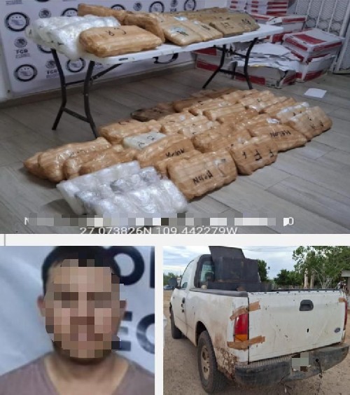 De forma conjunta, elementos del Ejército Mexicano, la Guardia Nacional, la Secretaría de Marina, la Policía Estatal de Seguridad Pública (PESP), y la Agencia Ministerial de Investigación Criminal (AMIC), lograron la detención de Luis Ángel “N”, en posesión de un significativo cargamento de narcóticos en la carretera México 15, tramo Los Mochis–Navojoa, a la altura del kilómetro 93+100, en el municipio de Huatabampo.