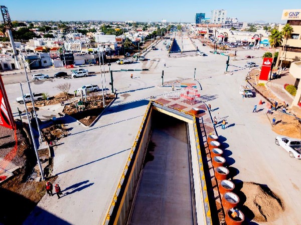 La directora de la Desarrollo de Infraestructura destacó que tras la apariencia despejada actual del paso a desnivel hubo mucho trabajo previo, en coordinación con la Comisión Federal de Electricidad y empresas proveedoras de servicios como internet y gas natural, para la colocación subterránea de todas sus infraestructuras y mencionó que resta poco por hacer para la reubicación de postes y cableado faltantes.