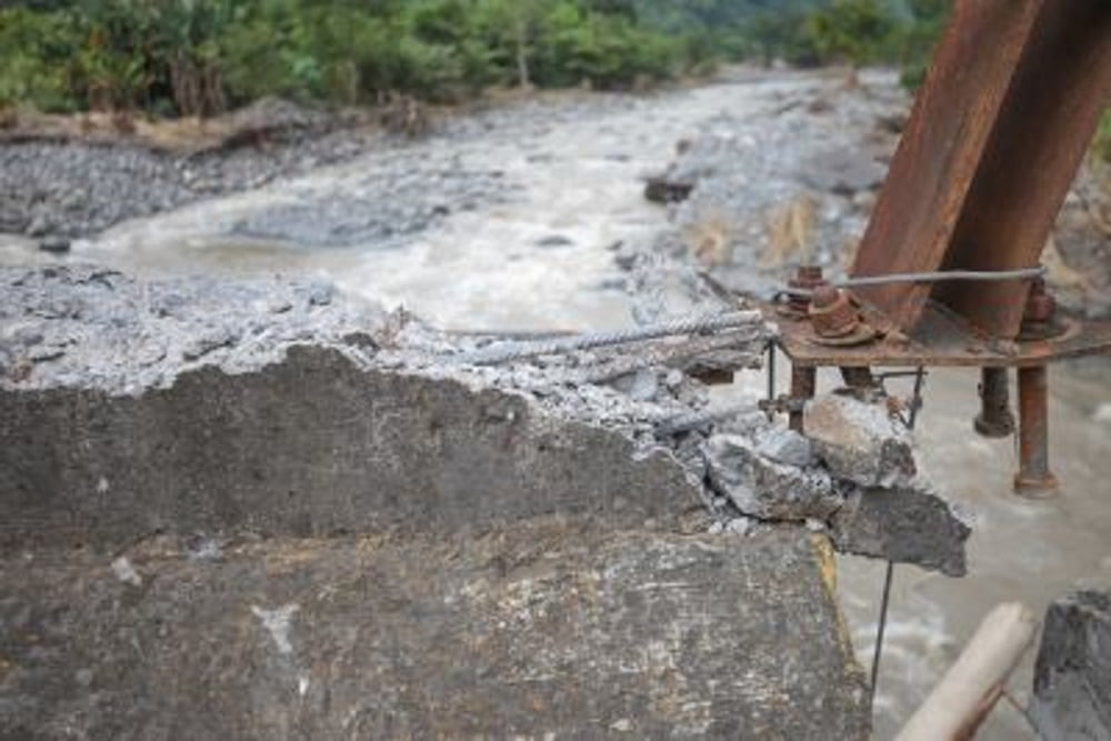 El puente que conecta a los municipios de Zihuateutla y Tlaola, resultó seriamente dañado por el temporal, lo que provocó que se interrumpiera la conectividad vial en la zona.