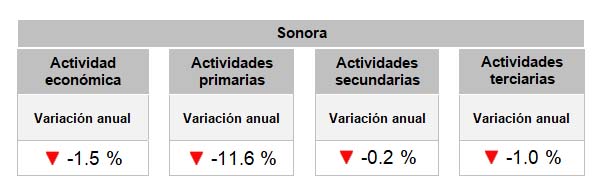 En el segundo trimestre (2T) de 2025, la actividad económica de Sonora mostró una contracción anual de 1.5 por ciento. Esta resultó del retroceso de las actividades primarias, secundarias y terciarias de 11.6, 0.2 y 1.0 %, respectivamente