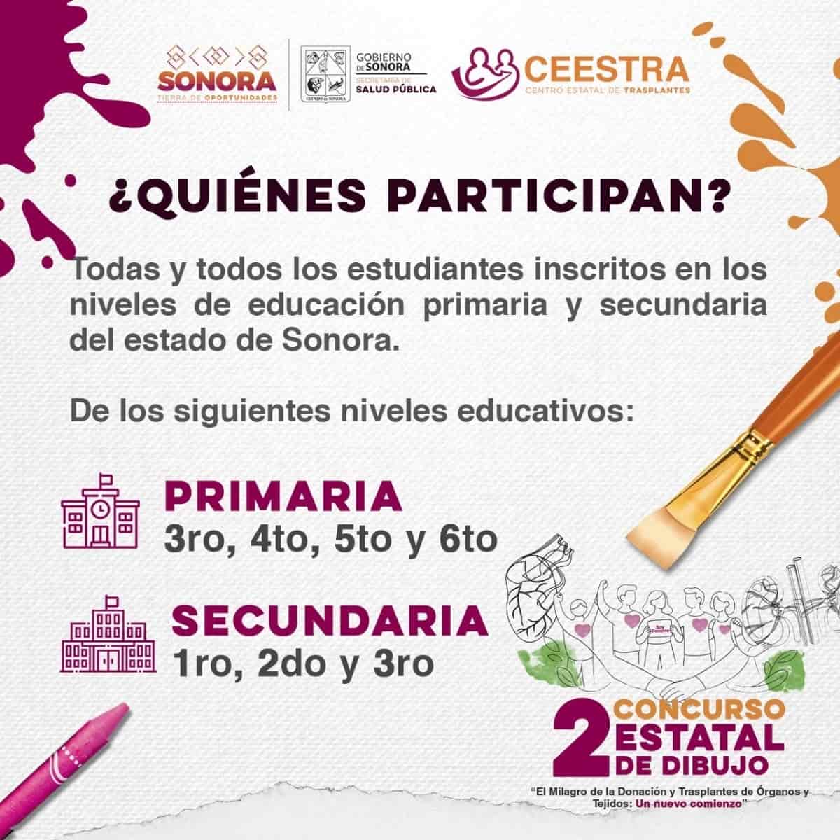 HERMOSILLO, SONORA. MX. — La Secretaría de Salud Pública (SSP) del Gobierno de Sonora, a través del Centro Estatal de Trasplantes (Ceestra), recuerda a estudiantes de primaria y secundaria que quedan pocos días para sumarse al Concurso Estatal de Dibujo “El Milagro de la Donación y Trasplantes de Órganos y Tejidos: Un Nuevo Comienzo”. La fecha límite de entrega es el 27 de febrero.